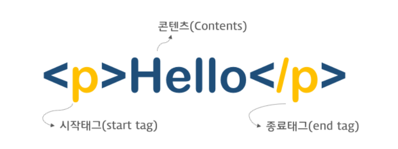 시작태그와 종료 태그 그사이에 위치한 content로 구성된다.