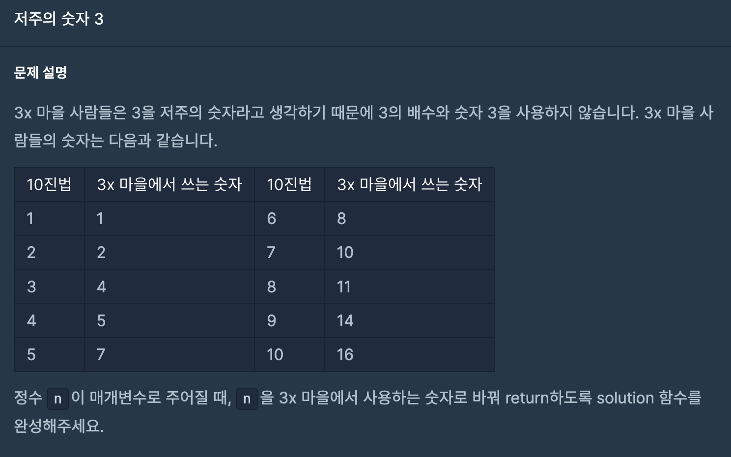 [프로그래머스] 저주의 숫자 3