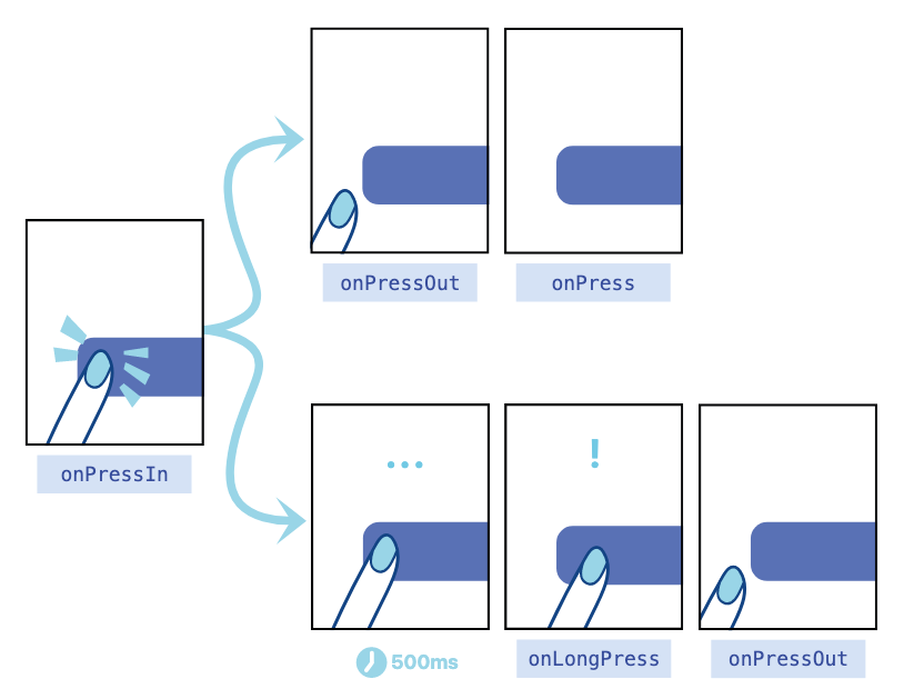 입력하는사람이 onPressIn 이후에 500ms 간 누르고있으면 onLongPress → onPressOut 이 발생한다.